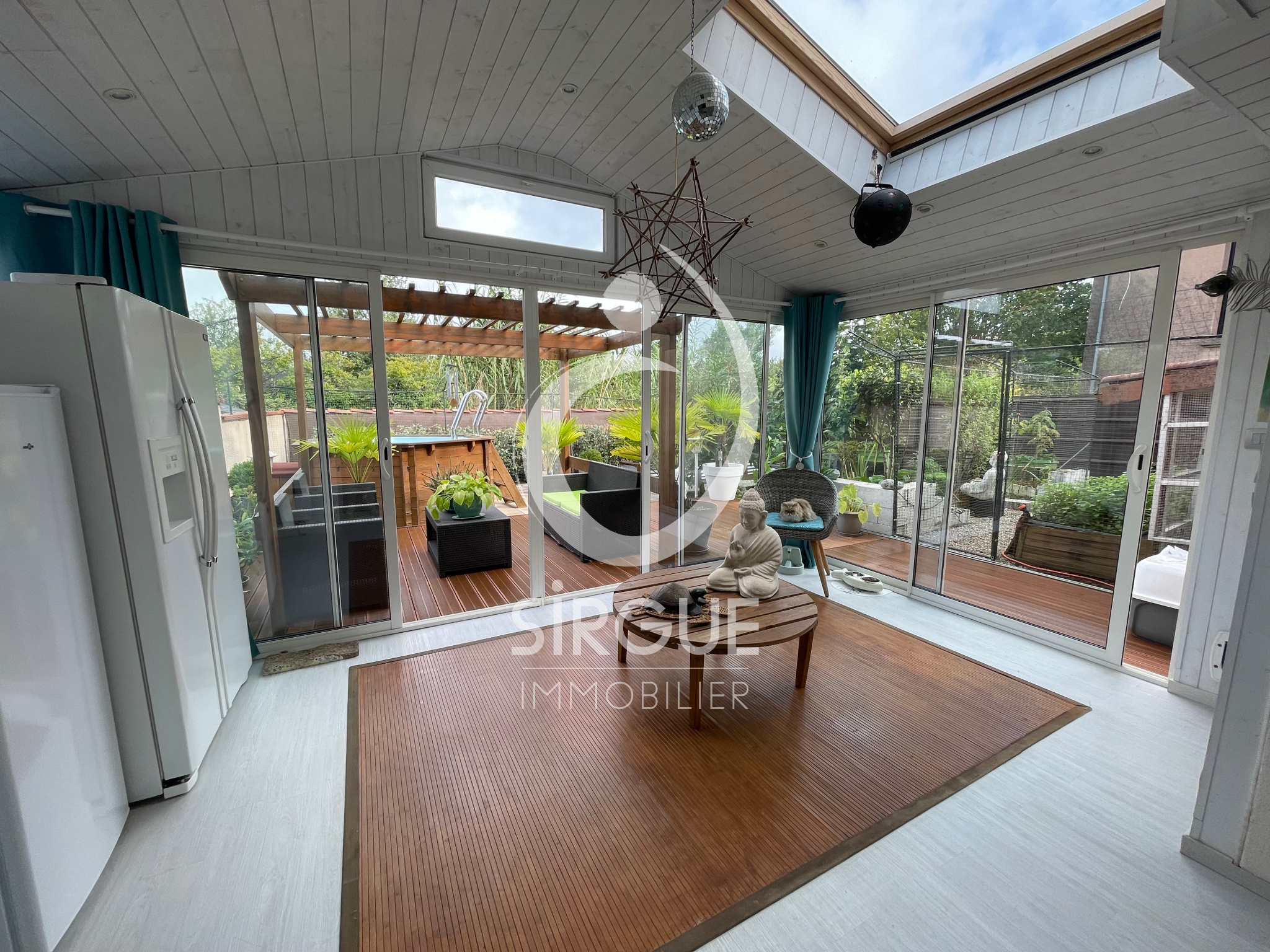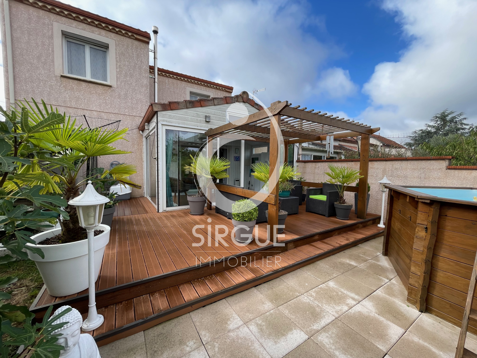 ALBI, secteur BELLEVUE, dans un impasse au calme maison tout confort de type T5 d'une surface de 147 m2. En rez de chaussée vous trouverez une pièce de vie avec une belle cuisine ouverte équipée avec électro ménager, un bureau, 2 WC, une buanderie. A l'étage 4 grandes chambres en parquet dont une avec sa salle d'eau et toutes avec de grand placard équipé. Egalement à l'étage une salle de bains avec baignoire et double vasque ainsi qu'un autre WC. La maison est équipée de doubles vitrages avec volets roulants électriques, des climatisations réversibles dans toute la maison ainsi qu'un poële à granules. Au niveau des extérieurs, une véranda prolonge la pièce de vie ainsi qu'une terrasse extérieure, une piscine hors sol, un jardin cloturé et arboré ainsi qu'un atelier séparé de 20 m2. La maison sera disponible à partir du début 2026.